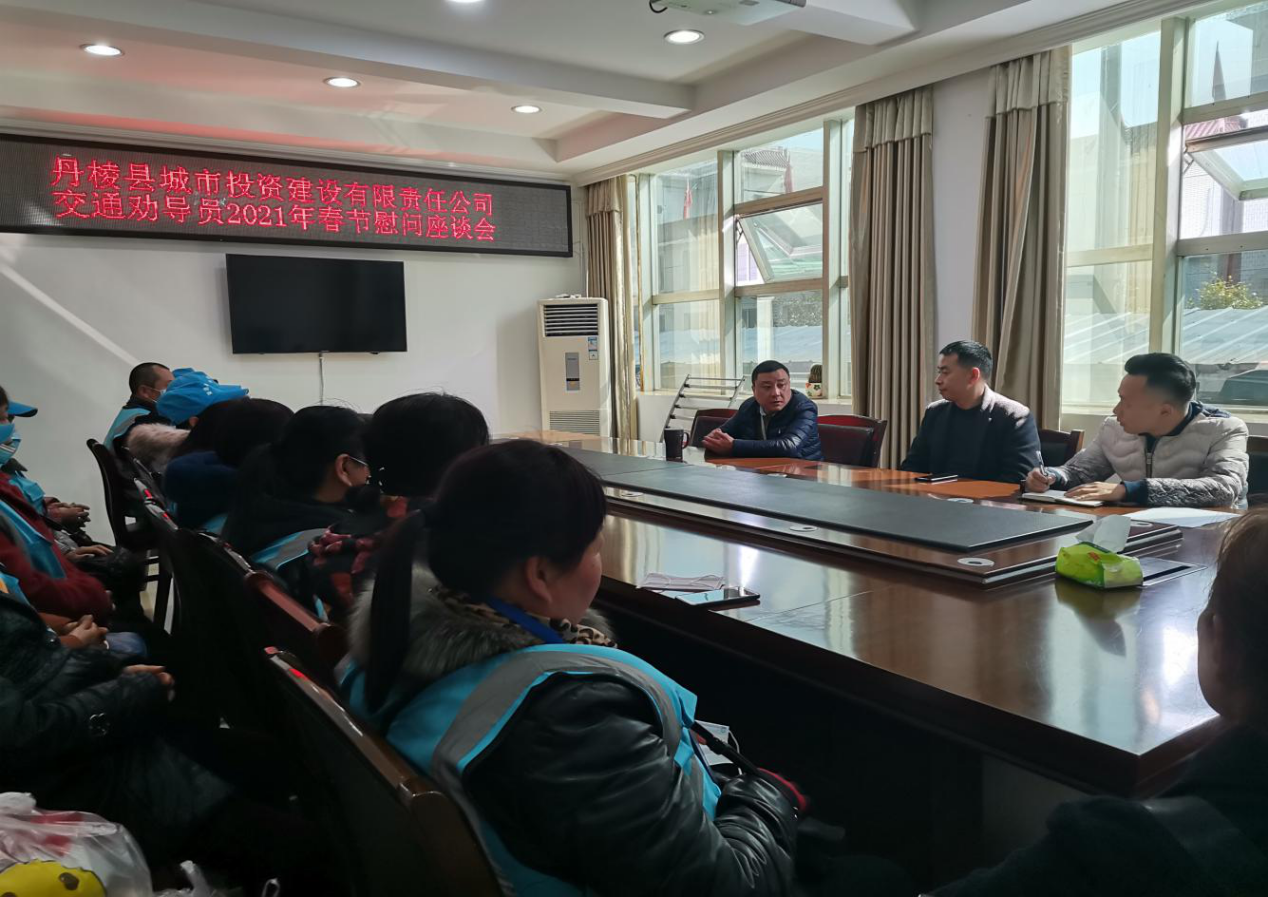 春節(jié)將至,歲寒情深。2月5日,丹棱縣城市投資建設(shè)有限責(zé)任公司組織召開(kāi)了交通勸導(dǎo)員2021年春節(jié)慰問(wèn)座談會(huì),會(huì)議在丹發(fā)展公司董事長(zhǎng)趙勇同志的主持下召開(kāi)。